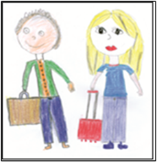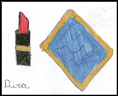 O professor é representado como uma pessoa jovial, que se preocupa com sua beleza, usa batom e se maquia (Desenho 5), chega à escola bem vestido, cabelos bem arrumados, transporta seu material em malas com rodinhas (Desenho 6), mostrando a imagem dos professores em contato com o mundo atual e com as novas tecnologias. Também transmite a mensagem da importância dos alunos para o profissional, o qual oferece o que tem de melhor, tanto com relação ao saber quanto ao ser. A mala de uma bagagem enorme representa conhecimento, dedicação, valores, ética, saber, entre outros, que esse profissional precisa ter para conduzir o processo de ensino-aprendizagem.