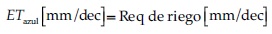 (10)La suma de ambas, ETazul (mm/dec) y ETverde (mm/dec) es igual a ETc (mm/dec).