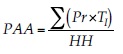 (13)Donde PAA = productividad aparente del agua ($/m3) en Chile para los años analizados; Σ (Pr x T) = precio de mercado ($/ton) del producto agrícola; HH = huella hídrica del producto agrícola (m3/ton). Los valores de la PAA en Chile para los años estudiados se tomaron del Informe Regional de Exportaciones Silvoagropecuarias (Odepa, 2013b).