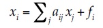 Los coeficientes de insumos directos se definen como aij = zij/xj, e indican los insumos (adicionales) en unidades monetarias (pesos) del sector i que se requieren para la producción de un peso adicional de producto en el sector j en la CVM. Cuando se utiliza esta definición y sumando las categorías de la demanda final (p. ej., fi = Σj fij), implica que la ecuación contable del producto sectorial puede reescribirse como: