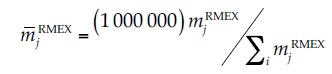 Los elementos típicos mij del vector M (renglón) denotan la importación que se origina en el sector externo j (resto de la economía mexicana o el resto del mundo) y que son comprados por los sectores i de la CVM (son los insumos importados).