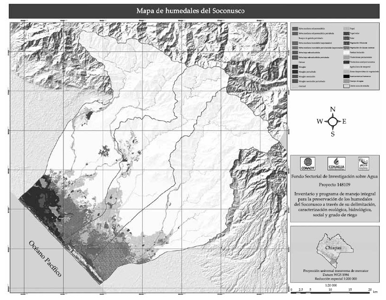 Alonso-EguíaLis, P., Brena, J., Castillo, C., Martínez, M., Sánchez, E., Vara, E., Ramírez, V., Mirén, V., Álvarez, J., Surre, P., Olea, S., Espinoza, E., Rioja, T., Rojas, A., Del Carpio, C., Sánchez, S., Carrillo, A., López, S., Pérez, M., Gómez, H., Gómez., & L. Vera, J. (2013). Inventario y programa de manejo integral para la preservación de los humedales del Soconusco a través de su delimitación, caracterización ecológica, hidrológica, social y grado de riesgo (491 pp.). México, DF: Fondo de Investigación sobre Agua, Conacyt-Conagua.