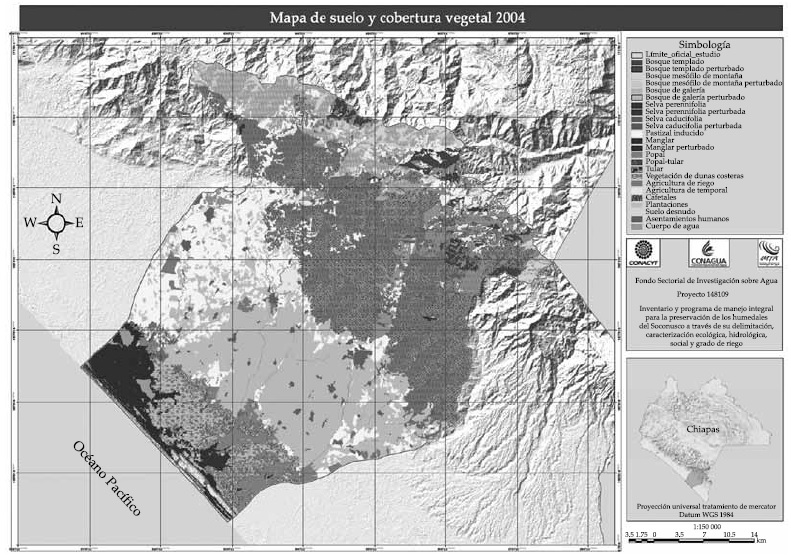El objetivo de este análisis es tener el contexto biofísico y socioeconómico que se manifiesta espacialmente y que permite caracterizar el aprovechamiento retrospectivo, actual y prospectivo de los recursos en cada cuenca, que impactan la salud y permanencia de los humedales en las cuencas bajo estudio. Mediante el procesamiento de las imágenes de satélite se elaboraron los mapas de uso de suelo y vegetación, y se evaluó el estado de la vegetación natural (Secretaría de la Convención de Ramsar, 2010a) presente en la zona de estudio en 1986, 2004 y 2010. Las clases establecidas, superficies y porcentajes de cobertura cuantificados se presentan en el cuadro 2. La figura 5 presenta la distribución de clases de uso de suelo y vegetación obtenida para 2004.