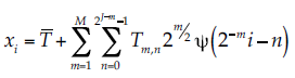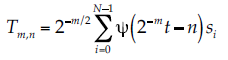 (10)donde j y n son enteros que modifican la función wavelet; el primero es el parámetro de escala que controla la dilatación y el segundo la translación. Tm,n es el coeficiente wavelet en esa escala y posición. Si si es una serie de tiempo de longitud N potencia de 2, el subíndice i = 0, 1, 2,… N – 1; si ocurre en un tiempo discreto i. La TWD inversa se puede obtener mediante la siguiente ecuación: