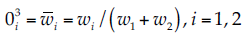 (4)Capa 3. Promedio de los nodos. Se calcula la relación de fuerza de disparo de la i-ésima regla con respecto a la suma de las fuerzas de disparo de todas las reglas y las salidas de esta capa son llamadas fuerzas de disparo normalizadas (03i ):