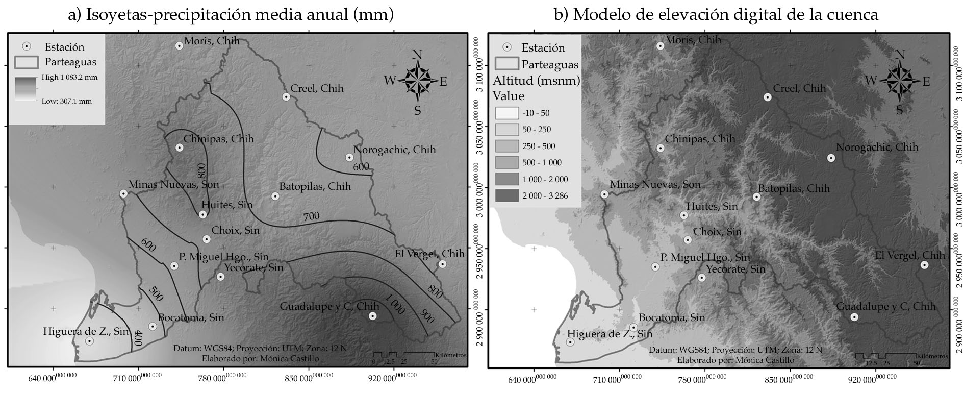 La información cartográfica e hidrológica utilizada en la caracterización física del área de estudio, como modelos de elevación digital, coberturas digitales de cuencas, ríos y presas fue obtenida de bases de datos del Instituto Nacional de Estadística y Geografía (INEGI, 2014) y la Conagua (2015b).