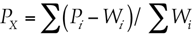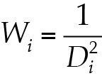 El procedimiento consiste en ponderar los valores observados en una cantidad W, igual al recíproco del cuadrado de la distancia (D) entre cada estación vecina i y la estación x; el dato buscado Px será igual que:
