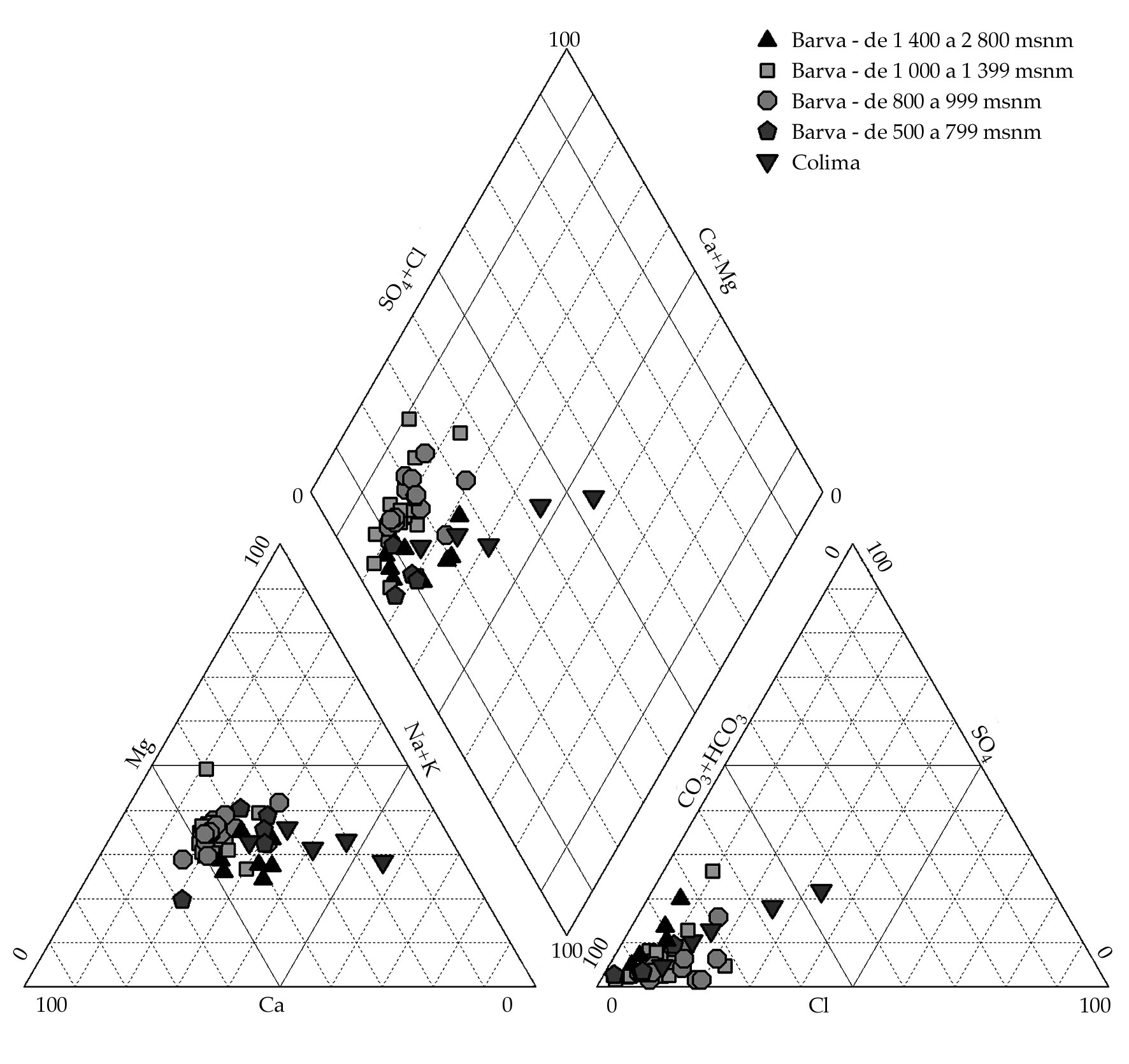 La determinación de los tipos de agua permite mejorar el conocimiento de la evolución geoquímica de la calidad del agua (Hamzaoui-Azaza, Ketata, Bouhlila, Gueddari, & Riberio, 2011; Prasanna et al., 2011), por lo que el presente estudio caracterizó hidrogeoquímicamente el agua de los acuíferos volcánicos Barva y Colima, amplió el conocimiento acerca de las posibles interacciones entre ambos acuíferos y determinó los cambios en las características del agua conforme varía la altitud.