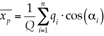 Chen et al. (2013) sugieren ponderar las coordenadas x y y de cada ángulo αi por los valores del gasto máximo anual (qi) de cada creciente. Las nuevas resultantes del ángulo medio (a) serán: