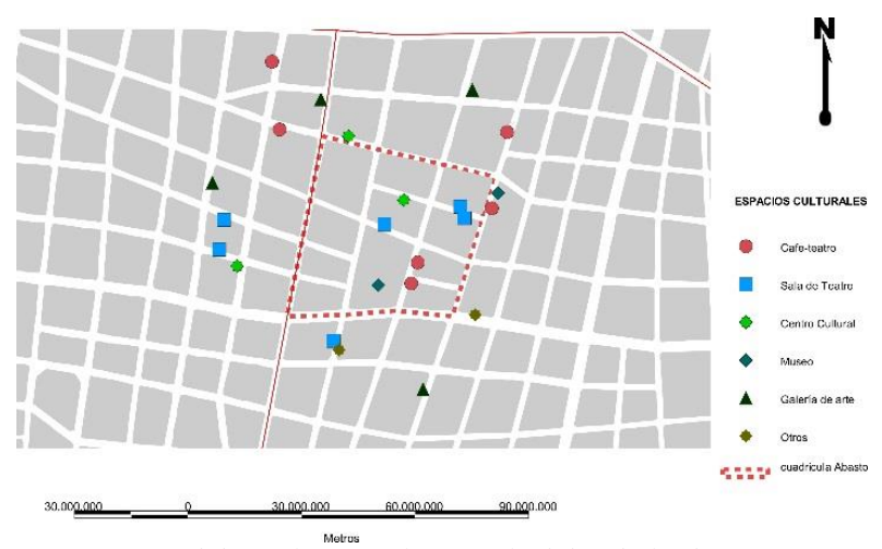 La reforma de El Abasto tiende a tomarse como un caso frustrado de gentrificación planificada. La enorme inversión privada, coordinada con la intervención pública, no tuvo el impacto inicial esperado a causa de la enorme crisis que sacudió el país entre 2000 y 2003. A pesar de todo, el barrio se ha renovado como enclave de ocio y consumo de la ciudad, ubicado estratégicamente junto al centro comercial de la ciudad y colindante a barrios pudientes de clase media porteña. Las transformaciones urbanísticas acontecidas durante las últimas dos décadas se plasman en primer lugar en la presencia de nuevos elementos arquitectónicos, claramente orientados a sectores socioeconómicos de clase media y media-alta, entre los que destacan las Torres Abasto –complejo habitacional de lujo, cerrado y video-vigilado- y el centro comercial Shopping Abasto, emplazado en el antiguo mercado, pero estética y funcionalmente renovado. Paralelamente, pequeños edificios originalmente usados como casas de vecinos fueron reconfigurados como restaurantes, tiendas de souvenirs y otras formas comerciales orientadas en gran medida al turismo. Estos nuevos usos del espacio, lejos de constituir iniciativas aisladas, están conectados a través de un hilo discursivo que redefine el Abasto como un territorio de alto valor patrimonial. El rescate de un relato edulcorado sobre la historia del barrio, fuertemente ligada a la del tango, se afirma recurrentemente en forma de estatuas, carteles y todo tipo de referencias a Carlos Gardel. La rehabilitación de la propia casa de Gardel como museo temático, la presencia constante de la imagen del artista o la adjudicación de su nombre a elementos como calles, plazas y hasta una estación de metro han contribuido a reforzar la imagen castiza. Incluso las tres torres-country, símbolo arquitectónico por excelencia del nuevo Abasto, fueron bautizadas con los muy tangueros nombres de Carlos Gardel, Enrique Santos Discépolo y Aníbal Troilo. En la última década, además, se ha ido forjando una red de pequeñas salas de teatro, cafés-teatro y galerías de arte, suponiendo un importante factor de atracción para un usuario del espacio joven, formado y bohemio (ver figura 2).