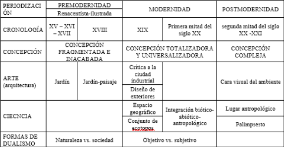 El marco histórico sobre el concepto paisaje que se conformó quedó de la siguiente manera: