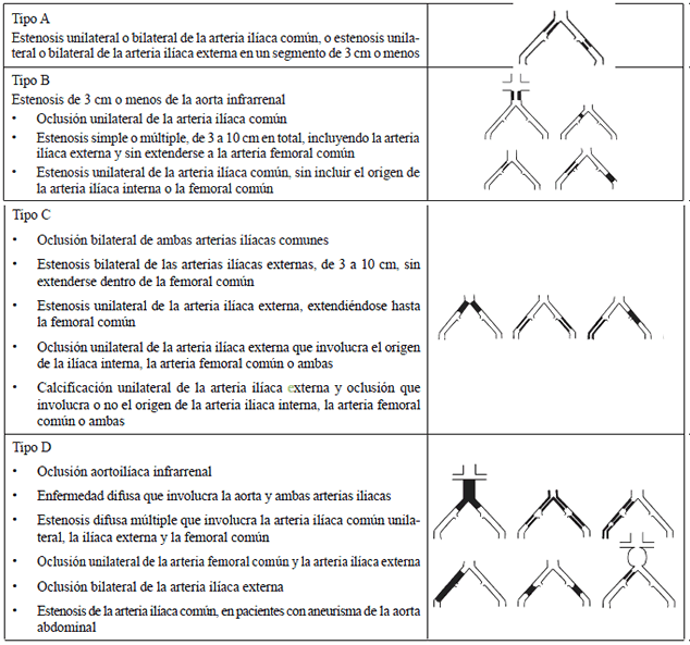 El tratamiento endovascular ha crecido como herramienta terapéutica para la enfermedad oclusiva aortoilíaca. Por recomendaciones del consenso TASC II, las lesiones de tipo A y B deben manejarse de forma endovascular como primera elección, con buenos resultados posquirúrgicos; mientras que las lesiones de tipo C y D tienen un mayor índice de fallas con este manejo.