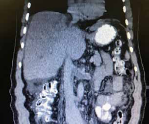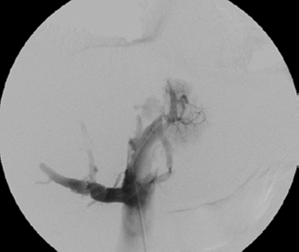 En resumen, se trata de un paciente masculino sin antecedentes de importancia que cursaba con un cuadro clínico de ascitis de larga data con trombosis de la vena cava y las venas hepáticas, de clase A según la clasificación de Child-Pugh, que tenía obstrucción indicativa de síndrome de Budd-Chiari, por lo cual se decidió un tratamiento endovascular con angioplastia percutánea y trombectomía venosa bajo anestesia general.