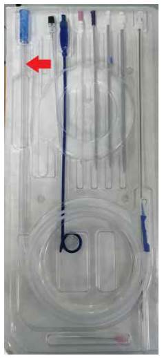 Catéter multipropósito tipo Pig Tail de 12 a 16 Fr., con introductor con punzón y endocánula que incluya conector para sistema de drenaje (figura 1).