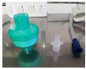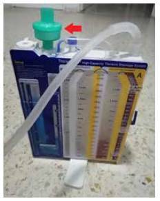 Una reciente publicación del Royal College of Physicians21 mostró un experimento usando un filtro antiviral en la salida del reservorio de la trampa de agua, para mitigar el riesgo causado por la generación de aerosoles en pacientes con COVID-19 sometidos a drenaje pleural. Se utilizó un filtro desechable de uso común en los circuitos de la máquina de anestesia, clasificado con un poder de filtración > 99,99 % de eficiencia (Clear-Guard ™ 3 filtro respiratorio, Intersurgical Ltda, Madrid - España), que se unió por un conector recto de 22 mm a 6 mm.