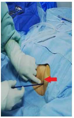 Si usa un campo quirúrgico con fenestra o "campo de ojo" retírelo en este momento.