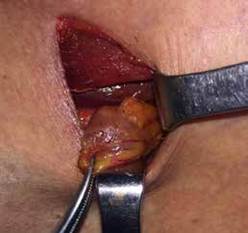 Un cirujano experimentado está en capacidad de identificar la o las glándulas afectadas en el 95 % de los casos. La fusión de imágenes (SPECT-CT) y la medición de la PTHi (molécula intacta) en el transcurso de la cirugía, han permitido tomar decisiones terapéuticas más acertadas, disminuyendo la tasa de recidiva del HPTP a menos del 5 % 26. La cirugía radioguiada y la decisión de realizar abordaje invasivo mínimo dependerá de la tecnología disponible en cada centro médico y de la experiencia del cirujano (figuras 2 y 3).