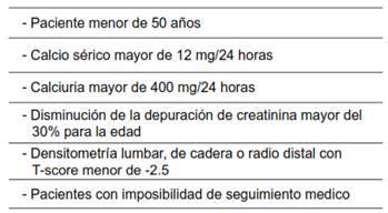 La cirugía es el tratamiento recomendado en el HPTP (tabla 3), para el paciente, sintomático o asintomático, que tenga compromiso de órgano blanco (osteopenia, urolitiasis, disminución de la tasa de filtración glomerular, úlcera péptica, pancreatitis o trastorno neuromuscular).