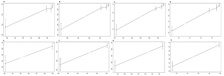 La validación interna de la cohorte de entrenamiento reveló un índice C de los nomogramas de supervivencia global y específica al cáncer de 0,80 (IC95%: 0,70-0,76) y 0,87 (IC95%: 0,73-0,81), respectivamente. Del mismo modo, el índice C correspondiente en la cohorte de validación externa fue 0,81 (IC95%: 0,76-0,86) y 0,88 (IC95%: 0,83-0,92). Estos resultados confirman que nuestros nomogramas de pronóstico son razonablemente precisos. El proceso de calibración (figura 4) muestra que la tasa de supervivencia real, concuerda bien con la predicción del nomograma.