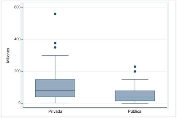 Un 67,8 % de los residentes con deuda educacional pertenecían a programas de universidades privadas. El promedio de la deuda en programas privados era de COP $104.000.000 (US $25.795) mientras en los programas de universidades públicas era de COP $56.000.000 (US $13.889) (Figura 1).