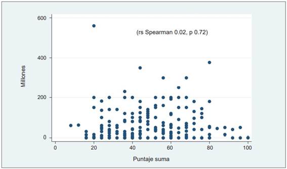 No se documentó una asociación entre un bajo bienestar psicológico (WHO-5 index < 50 puntos) y el nivel de deuda económica durante la residencia (r Spearman 0,02; p = 0,72) (Figura 3). De igual manera, un análisis estratificado de la deuda tampoco encontró asociación con el nivel de bienestar psicológico percibido (p = 0,16).