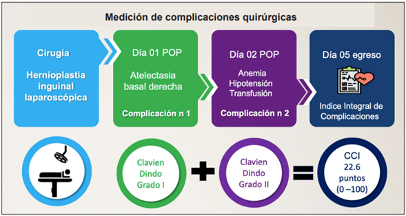Un avance en el tema es la creación en el 2013 del Índice Integral de Complicaciones (CCI, por sus siglas en inglés), que pondera la gravedad de la complicación con respecto a su impacto clínico 21. Su explicación se enuncia a continuación: