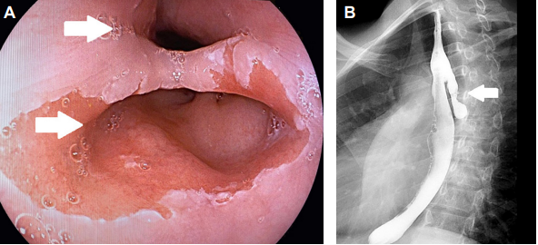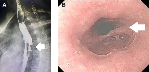 Se realizó un esofagograma de control en el primer día posoperatorio, observando paso fácil del medio de contrate y disminución de la retención del medio de contraste (Figura 3). La paciente se presentó a consulta de control asintomática. Como parte del seguimiento posoperatorio, se realizó control endoscópico donde se observó una luz amplia, sin retención de alimentos.