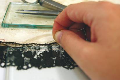 It is well known that “each intervention is directed by what is seen as the role of the object” (Eastop 2006:526). In this case, the textile was regarded as a museum object which deserved conservation treatment, especially because it had been stored under inadequate conditions for such a long time. Therefore, it was decided that areas of loss -both in the lace and the linen cloth- would be camouflaged by simulating a continuity of the textile elements.