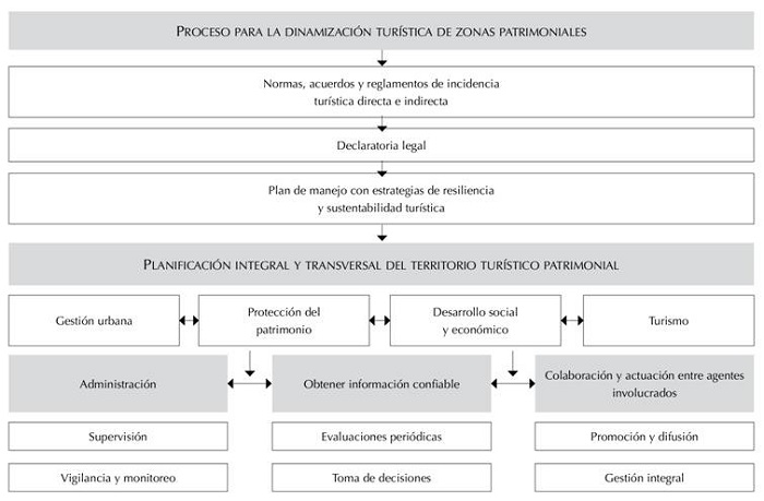 Las ciudades históricas en los últimos decenios se configuran como “realidades urbanas que viven en tensión permanente” (Troitiño et al. 2010:14) y enfrentan grandes desafíos por las dinámicas funcionales que en ellas se desarrollan, en particular cuando se constituyen como destinos turísticos patrimoniales. En diversos sitios y conjuntos patrimoniales se pretende adecuar -muchas veces, forzar- de manera insistente los límites de operación que se tienen para el desarrollo del turismo cultural y urbano con estrategias que suelen olvidar el equilibrio funcional que debe sostenerse entre sociedad, patrimonio cultural, ordenamiento territorial y desarrollo urbano. “El éxito de un destino turístico patrimonial depende tanto de la coordinación de políticas sectoriales (medioambiente, urbanismo, infraestructuras, ordenación del territorio, cultura, seguridad, turismo, etc.) como de la formulación explicita de políticas turísticas o culturales (Troitiño et al. 2010:26). Este modelo de desarrollo es uno de los grandes desafíos actuales para integrar políticas turísticas sostenibles y resilientes en las ciudades históricas.