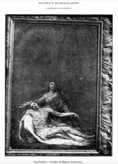 En la prensa se reprodujeron fotografías de las piezas donadas por Ruiz Olavarrieta: se habla de un Tiziano; de cuadros de la escuela francesa, como una Piedad de Delacroix (Figura 2); de la escuela española: dos bocetos de Murillo, La Concepción y La Asunción de María, y un cuadro de Herrera, entre otras (Figura 3).