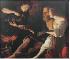 Actualmente, las tres piezas mencionadas se conservan en el Museo Nacional de San Carlos (MNSC) y todavía queda mucho por estudiar sobre ellas como objetos plásticos, no obstante, su pertenencia a la colección es una vía de entrada importante para su estudio. De la segunda Lot y sus hijas, en el expediente que conserva el museo se intuye que ésta formó parte de la Colección Olavarrieta, aunque la primera, hoy atribuida a “algún pintor originario de Boloña”, ha quedado fuera de la capa de significado que otorga el haber sido parte de una colección ecléctica formada en Puebla a finales del siglo XIX (Figura 4). A la fecha, el MNSC tiene identificadas 36 piezas cuyo “probable origen” fue la Colección Olavarrieta. Si se añade Lot y sus hijas, así como otras piezas (Calvario [copia de una obra de Andrea Mantegna], El niño dios con un cordero [copia de una obra de Murillo] y Galileo [copia de una obra de José de Ribera, el Españoleto]), identificadas a partir del entrecruce de información de los inventarios y documentos de archivo, habría 40 piezas de Olavarrieta ubicadas en el acervo del museo.15