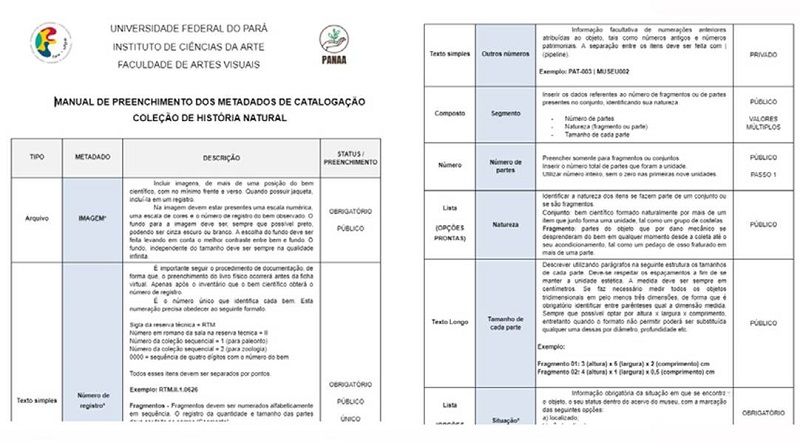 La colección de NHC/UFPA incluye objetos que no sólo forman parte del acervo científico, sino que también funcionan como materiales didáctico-expositivos para las exhibiciones. Esos objetos corren el riesgo de fragmentarse o contaminarse, ya que se los manipula con frecuencia; es fundamental contar con documentación que incluya metadatos específicos para los diagnósticos de conservación a fin de garantizar su adecuada preservación. La antigua documentación de NHC/UFPA no proporcionó una base de datos que pudiera migrarse automáticamente a una nueva plataforma, además de que hubo que revisar los metadatos, por lo que para el nuevo repositorio digital se requirió la captura manual de los datos. Fue necesario actualizar el modelo de documentación museológico para la NHC/UFPA, con el fin de optimizar el movimiento de datos y los diagnósticos de conservación.
