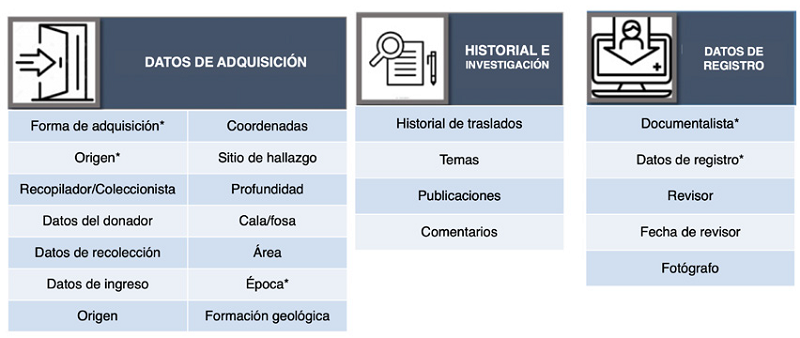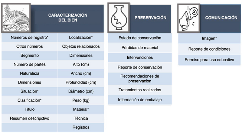 Los trabajos de musealización alteran el significado de los objetos al crear brechas con su origen y su función. El reconocimiento formal de los bienes culturales y las colecciones es de suma importancia, y se puede lograr con diversas herramientas, como son los inventarios, los libros patrimoniales, los libros de registro, los lineamientos y las normas; todo ello ayuda a gestionar la información técnica (Lima, 2021, p. 60; Delvene et al., 2018, p. 458; Museu, 2017, p. 5; Alves, 2012, p. 40; Green, 2001, p. 12). La documentación de piezas de museos, sea a través de inventarios manuales o del uso de bases de datos, es una práctica relativamente común (Lima y Sborja, 2022, p. 11).