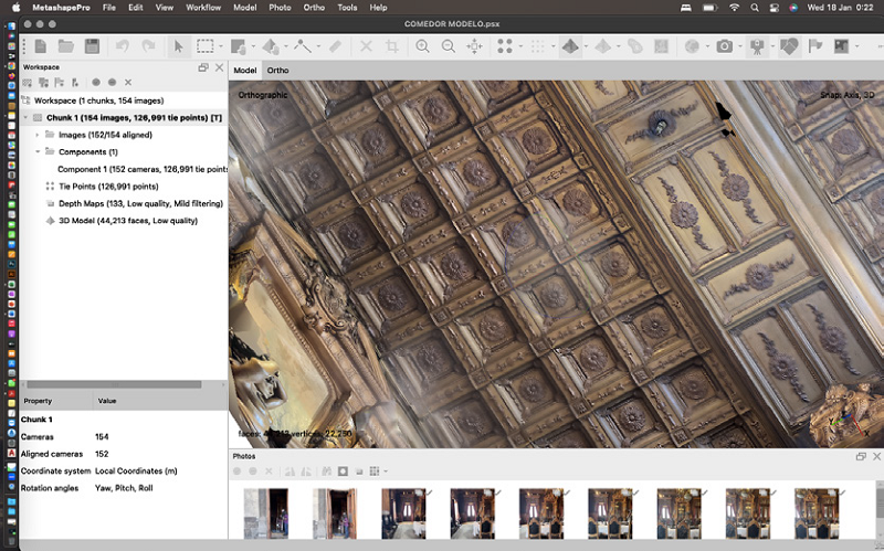 En los días subsecuentes la dinámica consistió en la explicación del proceso fotogramétrico digital por parte del doctor Vasáros y el maestro Takáts, iniciando por la metodología para las tomas de datos mediante los dispositivos tecnológicos, ya fueran celulares o drones; el postproceso en el programa denominado Agisoft-Metashape 2.0(Figura 1) instalado en las computadoras utilizadas por los participantes y, finalmente, la obtención de un modelo tridimensional a escala del sitio u objeto levantado, además de demostrar cómo esta tecnología puede convivir y complementarse con otras.