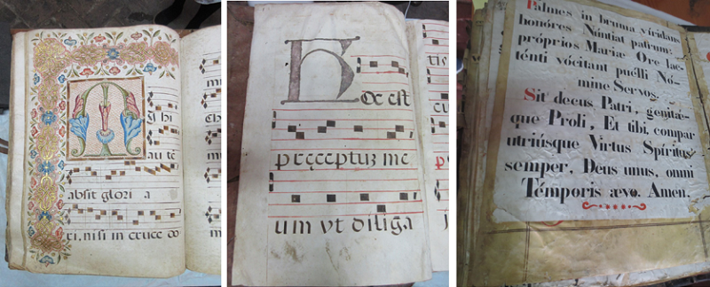 Además del texto y la música de los cantos, estos libros contienen iluminaciones (ilustraciones y aplicaciones metálicas) de diferentes tipos: decorados que abarcan toda la página, orlas, capitulares decoradas, etc. Se utilizaron entre el siglo XV y la primera mitad del siglo XX (aunque su producción ya había comenzado a decaer desde el siglo XVII), y si bien su contenido fue siempre el mismo (los cantos de la Iglesia católica), las iluminaciones pasaron por diversos estilos a lo largo de la historia (Sierra, 2014, p. 48). Por los elementos que los comprenden: texto, música e iluminaciones, estos libros son de gran interés en diversas áreas de estudio, que van desde la historia hasta la musicología.