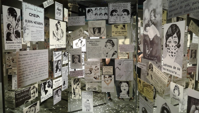 Para esta exposición se realizó un intenso trabajo de archivo en busca de publicidades históricas, tanto en archivos virtuales (relevamiento de publicidades en la revista de publicación nacional Caras y Caretas) como en la Biblioteca Pública General San Martín (en revistas mendocinas). El eje de la búsqueda fue la imagen prescriptiva y los mandatos sociales, estéticos y de moda sobre las mujeres en el periodo abordado.