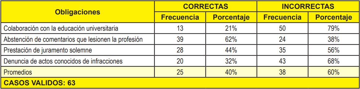 Esto, podría traducirse en una debilidad para el futuro ejercicio profesional de los estudiantes de Contaduría Pública del NURR, ya que al desconocer las obligaciones propias del contador público, puede verse comprometida su integridad y por ende su ejercicio profesional.