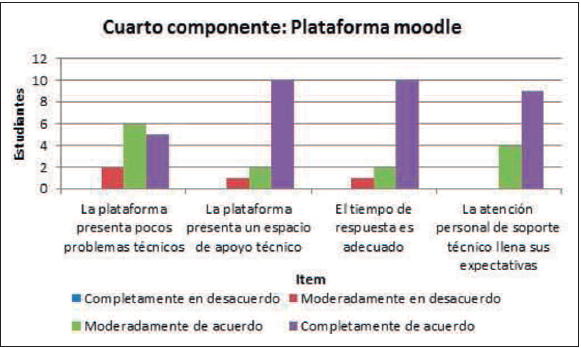 - Cuarto Componente. Plataforma MOODLE: este componente permite analizar los problemas y potencialidades de la plataforma MOODLE para estudios interactivos a distancia.