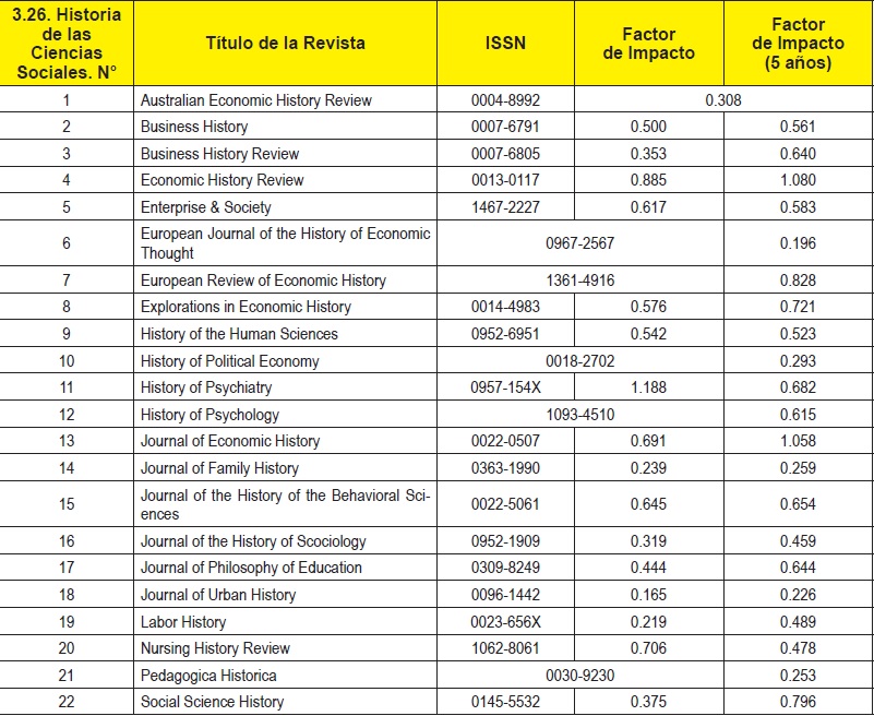 Un arqueo sobre el estado del facto h de la RHELA nos determina un mejor posicionamiento en el ranking de revistas latinoamericanas en el campo de la historia, que incluso está por encima de las 20 clasificadas. Al respecto presentamos ese registro como factor de medición que coinciden con Revista de Historia de la Educación Latinoamericana.