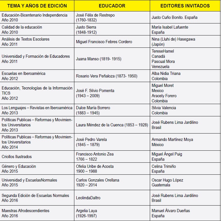 Sin embargo, la red internacional SHELA ha sido pionera en los estudios bibliométricos y cienciometría en el campo de historia de la educación,15 específicamente en el Simposio de Revistas de Educación e Historia de la Educación, en el VIII Congreso Internacional de la SHELA, realizado en Manizales entre el 27-30 de agosto 2011. Este precedente nos ubica con antelación a plantearnos la discusión sobre la visibilidad, productividad e indexación de las revistas de historia de la educación, que recién en 2014 se hace en ISCHE. Es este evento fuimos pioneros analizando métricas, y problematizando el tema de la digitalización e indexación.16 En el 2015, también el Grupo Hisula-UPTC-Tunja organizó en la Feria Internacional del Libro un panel donde tuvimos la conferencia: “Indexación de las revistas de Historia de la Educación”17 Esta mirada nos hace ver que no somos “caja de resonancia” al plantearnos este trabajo, sino que somos una línea de investigación sostenida en el tiempo. En el reciente congreso de la red ISCHE, realizado en Chicago (EEUU), la Dra. Diana Soto Arango presentó la ponencia de grupo, Diana Soto Arango, José Pascual Mora García y Sandra Liliana Bernal, intitulada: “Revista historia de la educación latinoamericana en los retos editoriales.”18