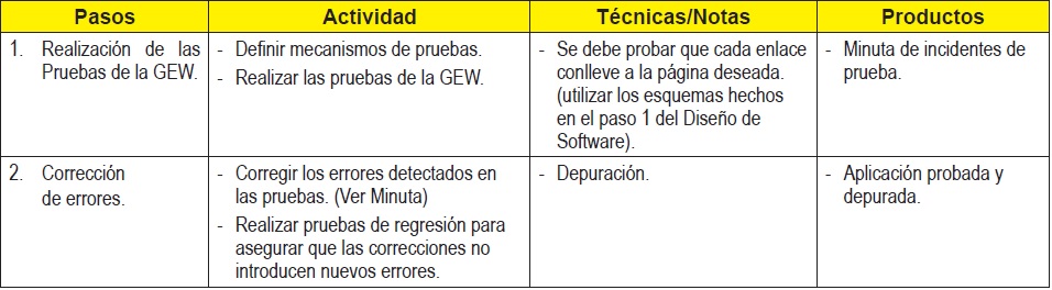 Contemplan actividades Diseño, Implementación, Pruebas y Entrega.