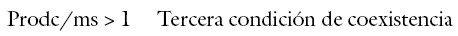[5]De la ecuación [5] interesan dos aspectos. El primero es que, dado que todos elementos son cantidades positivas y si la tasa de ganancia es también positiva, entonces la productividad relativa debe ser mayor que 1. Coincide con la intuición ya anotada y sería una tercera condición de coexistencia.
