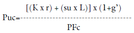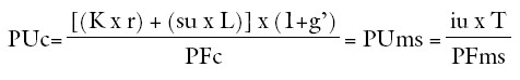 Volviendo a las ecuaciones [1] y [2] y recordando que se ha igualado PUms y PUc, se tiene: