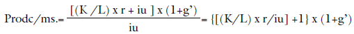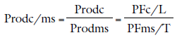 La Productividad Mercantil Simple del Trabajo Prodms sería la relación entre la producción física de estos productores y el trabajo utilizado en la producción T.