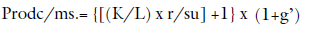 [4]Substituyendo en [3] las producciones físicas por sus equivalentes de [4] se tendría: