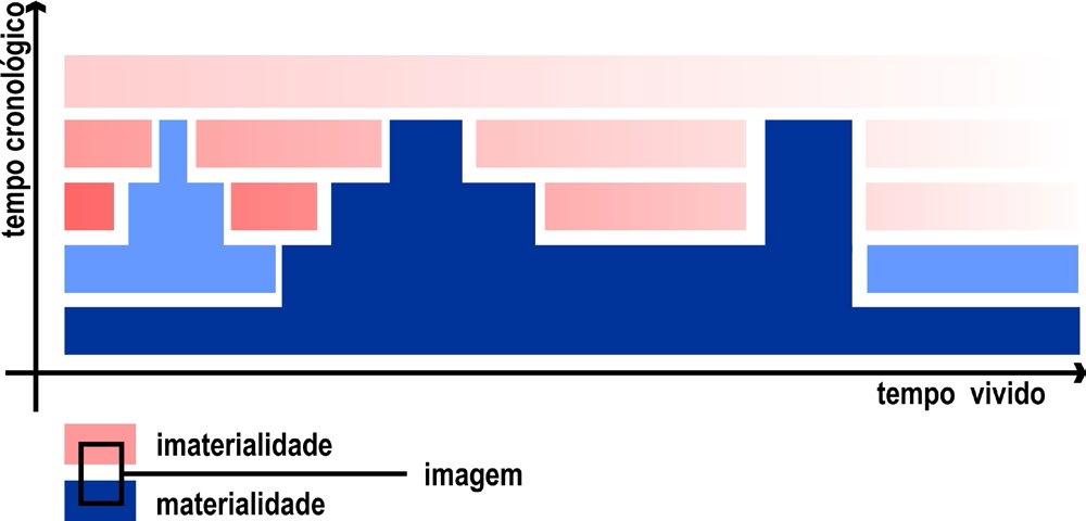 A cidade registra diferentes períodos da urbe e da narrativa da vida dos participantes que a experimentam: “mesmo após o fim de um período cronológico, as influências culturais e simbólicas permanecerão inscritas no espaço, e ainda farão parte de sua estrutura material” (Crestani, 2014, p. 29). A reunião de passado e presente imprime um caráter atemporal4 à paisagem urbana (Duarte, 2006; Santos, 2008; Yázigi, 2001).