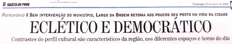 O setor histórico, na figura do Largo da Ordem, permanece como cenário de multiuso pela população da cidade desde sua origem (no século XVII), caracterizando-se na contemporaneidade como um espaço de apropriação de diferentes coletividades. A permanência do Largo da Ordem como espaço simbólico parece, sobretudo, muito mais sustentada por sua capacidade de projeção como um lugar de memória urbana, do que dependente de ações de intervenção municipal relacionadas à sua manutenção como local identitário da imagem e da memória da cidade (figura 2).