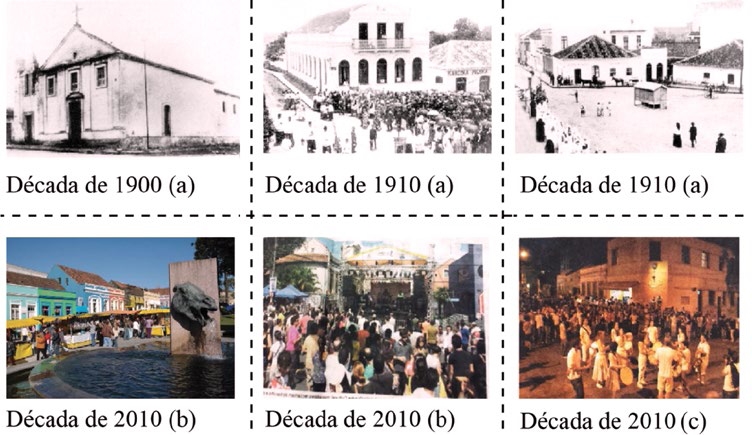 Na ascensão vertical de um século (figura 3) o Largo mantém-se como espaço de reuniões urbanas, inicialmente motivadas por festas religiosas (década de 1910), substituídas na contemporaneidade (década 2010) por eventos culturais associados às feiras, música e ao carnaval.
