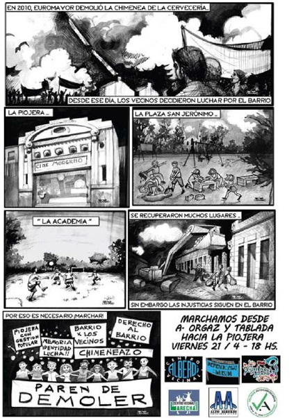 La Red de Vecinos y Asociaciones de San Vicente y la Multisectorial Defendamos Alberdi surgen de la voluntad colectiva de detener el avance y la violencia “desarrollista” expresada en la demolición de íconos identitarios de cada barrio. En el caso de San Vicente, fue la resistencia a la demolición de la casona del Sindicato de Conductores de Trenes “La Fraternidad”, en 2009; en Alberdi, fue la oposición a la demolición de la chimenea de la antigua Cervecería Córdoba, en 2010. Ambos grupos se formaron por la resistencia a un acontecimiento emergente: el “¡Alto!”, “¡Ya Basta!”, “Paren de demoler”. La voluntad colectiva de detener el avance del proyecto desarrollista, el deseo de irrumpir en el desarrollo “pacífico” del modelo hegemónico de ciudad, unifica ambos procesos.
