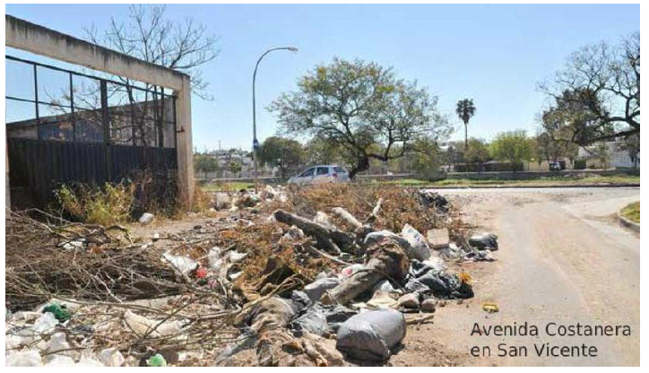 En el caso de San Vicente, el río presenta una lógica de apropiación y desvalorización opuesta pero convergente. Desde el final de la zona céntrica, el curso de agua cordobés está abandonado de la política pública: no cuenta con márgenes, ni parquización, ni iluminación; la avenida Costanera como vía rápida que costea el río Suquía está en terribles condiciones. En sus márgenes, en lugar de complejos habitacionales y edificios en altura, se pueden ver basurales y viejos edificios de fábricas abandonadas.